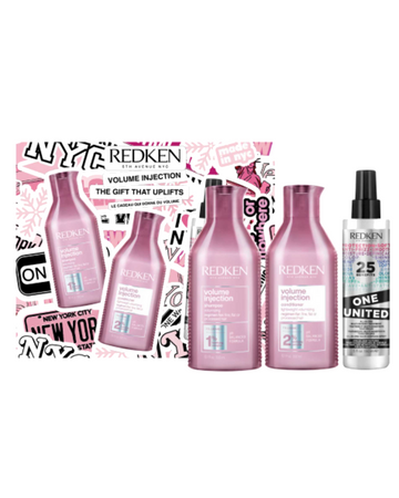 Redken Volume Injection Shampoo 300ml, Redken Volume Injection Conditioner 300ml och vår bästsäljande Redken One United Multi Benefit Spray 150ml.